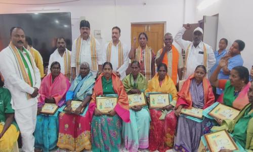 VM Today News - రాజకీయం / పల్నాడు : పల్నాడు జిల్లా,నరసరావుపేట:సమాజానికి సేవలందిస్తూ గ్రామాలు వీధులు వాడలు పట్టణాలను శుభ్రంగా ఉంచడంలో కీలక పాత్ర పోషిస్తున్న పారిశుద్ధ్య మహిళా కార్మికులను గౌరవిస్తూ బీజేపీ పల్నాడు జిల్లా ఎస్సీ మోర్చా అధ్యక్షులు మేళం మధుబాబు ఆధ్వర్యంలో చీరల పంపిణీ కార్యక్రమాన్ని నిర్వహించారు రాష్ట్ర బిజెపి అధ్యక్షులు పివిఎన్ మాధవ్ మరియు బిజెపి ఎస్సీ మోర్చా రాష్ట్ర అధ్యక్షులు పనతల సురేష్ పల్నాడు జిల్లా అధ్యక్షులు ఏలూరు శశి కుమార్ సూచనల మేరకు అంతర్జాతీయ మహిళా దినోత్సవం సందర్భంగా మన మహిళ - మన ఆత్మగౌరవం కార్యక్రమం స్థానిక మున్సిపల్ గెస్ట్ హౌస్ లో ఘనంగా నిర్వహించారు ముందుగా రాజ్యాంగ నిర్మాత డాక్టర్ బి.ఆర్ అంబేద్కర్ చిత్రపటానికి పూలమాలవేసి నివాళులు అర్పించారు అనంతరం భారత్ మాతాకీ జై అంటూ ముఖ్య అతిథులుగా పాల్గొన్న బిజెపి నాయకులు మహిళా పారిశుధ్య కార్మికుల పాదములకు పూలతో నమస్కరించి దుశ్శాలువాలతో వారిని ఘనంగా సన్మానం చేశారు కార్యక్రమంలో భాగంగా పారిశుద్ధ్య మహిళా కార్మికులు 140 మందికి చీరలు పంపిణీ చేసి స్వచ్ఛభారత్ మెమొంటోలను అందించారు